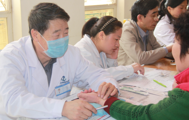 图:耳科医生为外耳道炎患者讲解病情